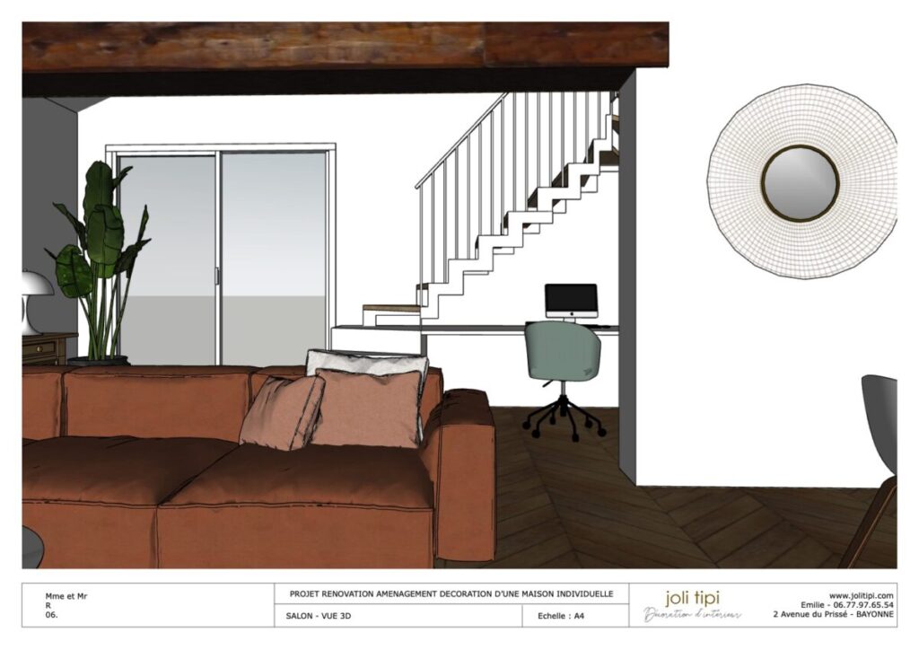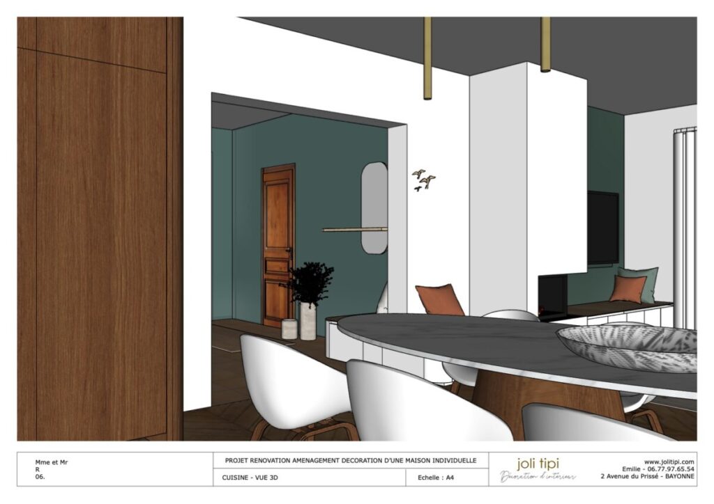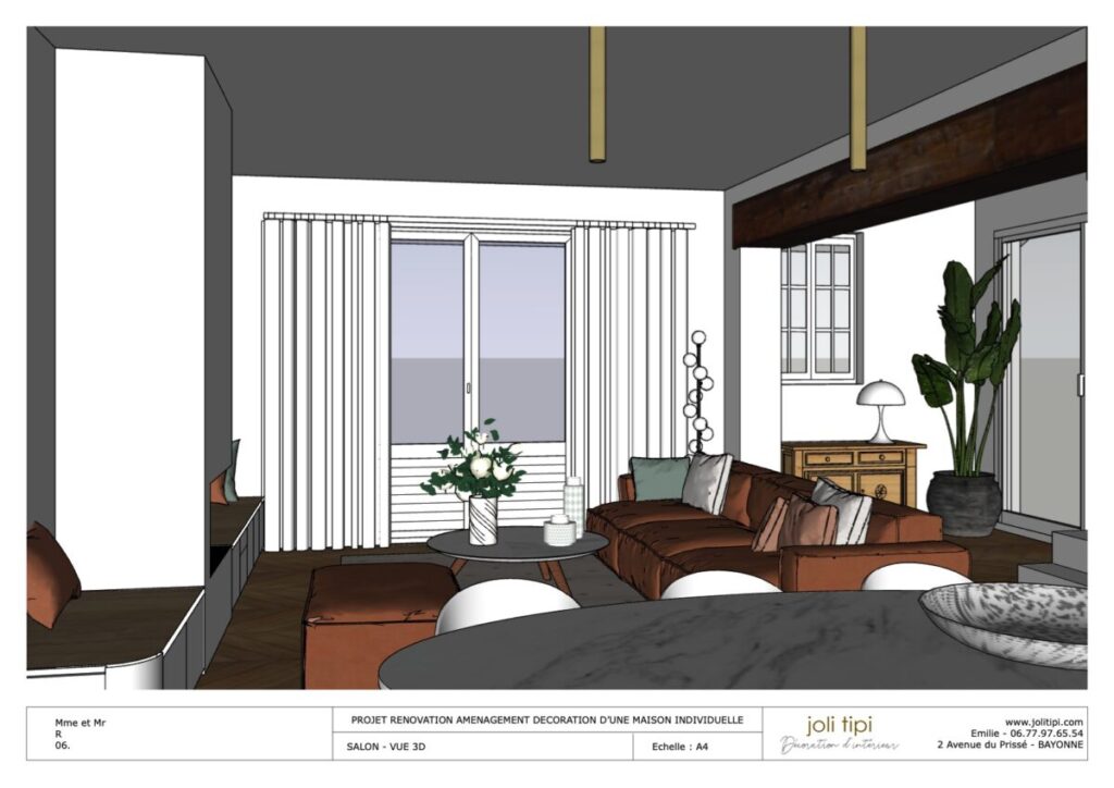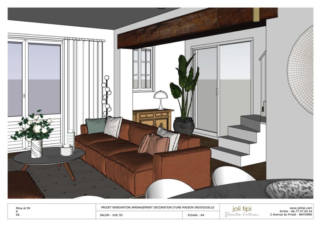 Vous souhaitez revoir l’agencement d’une pièce ou de la totalité de votre habitation, pour optimiser les espaces et harmoniser votre intérieur ? Voici un exemple de prestation réalisée dans le cadre de la rénovation d’une maison des années 60.