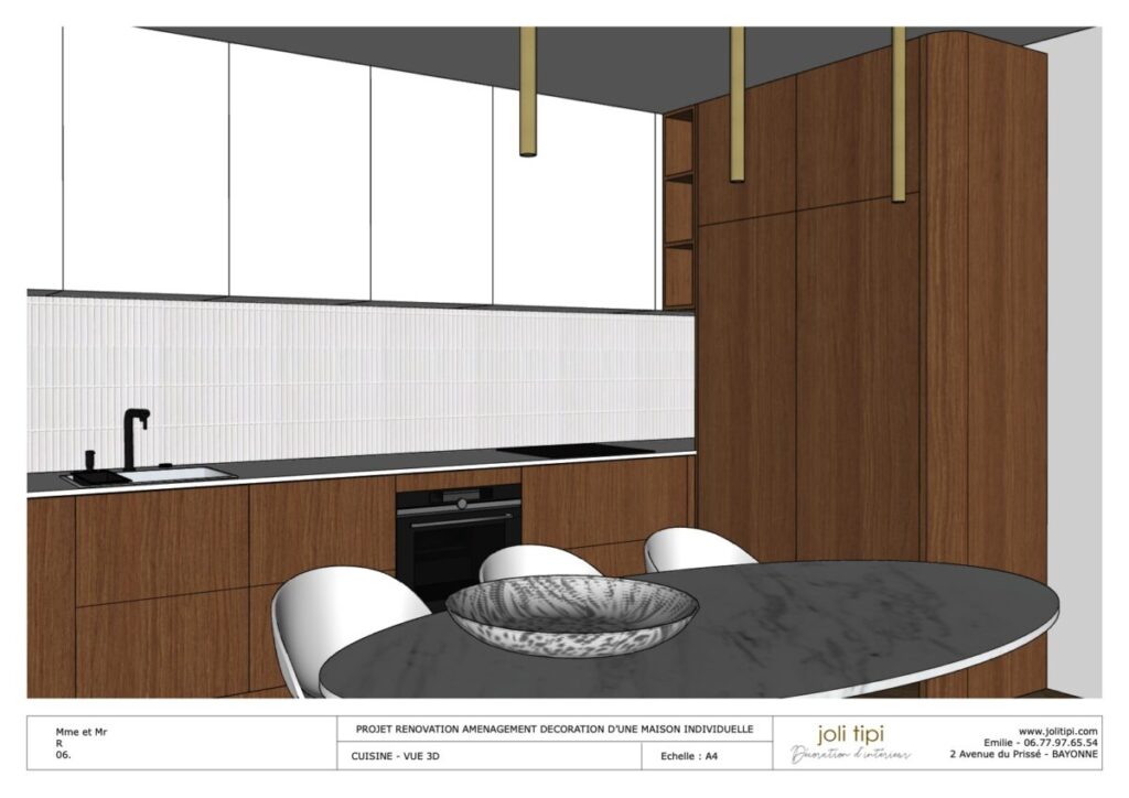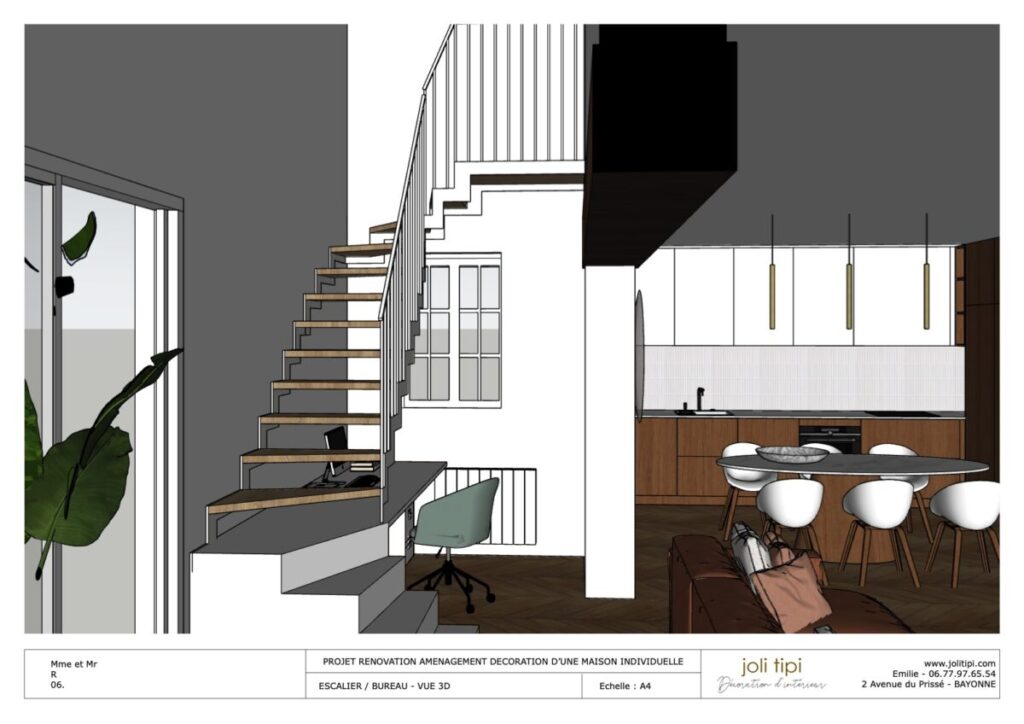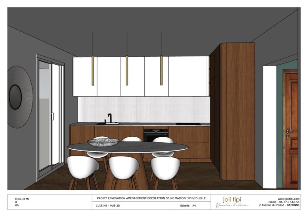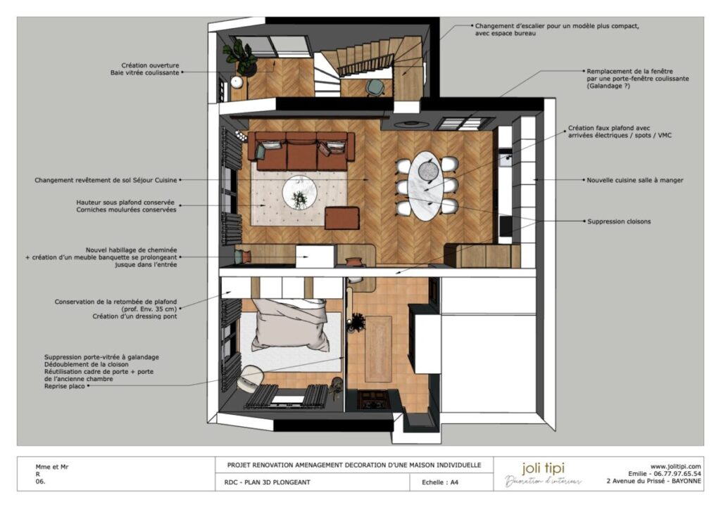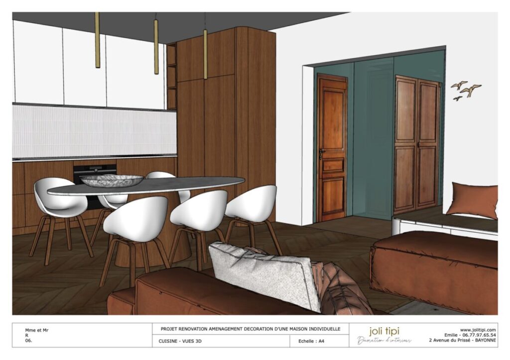Vous souhaitez revoir l’agencement d’une pièce ou de la totalité de votre habitation, pour optimiser les espaces et harmoniser votre intérieur ? Voici un exemple de prestation réalisée dans le cadre de la rénovation d’une maison des années 60.